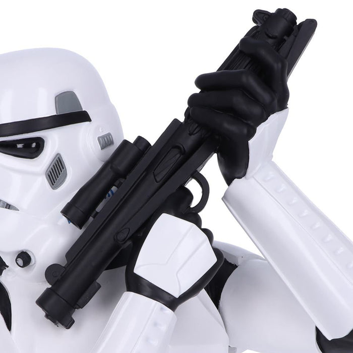 El busto del soldado de asalto parece la mitad superior de un soldado de asalto de la franquicia Star Wars. La intrincada armadura blanca esculpida, el característico casco y el rifle bláster se basan, por supuesto, en los originales de las películas y están cuidadosamente pintados a mano. El busto del soldado del Imperio de gatillo fácil mide unos 30 cm, lo que lo convierte en un impresionante complemento para tu estantería de coleccionista (o para cualquier otro lugar de tu casa friki) ;)