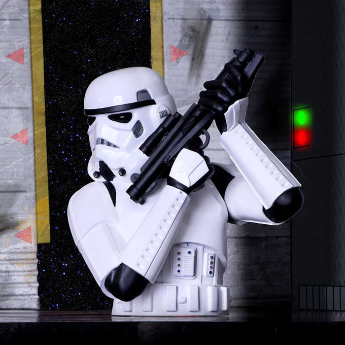 • Busto de un Stormtrooper con armadura completa y arma de fuego