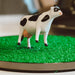 La sección del platillo es de acero y la antena también sirve de interruptor. El rayo tractor es de cristal acrílico y la vaca abducida está sobre un trozo de hierba artificial de verdad.