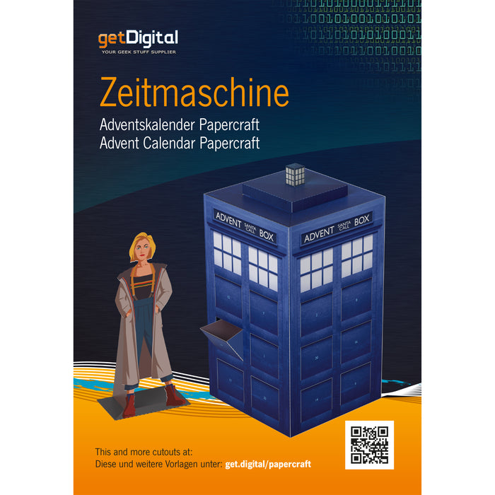 Mit dem "Zeitmaschinen-Adventskalender"-Papercraft kannst Du Dir nämlich eine Miniaturversion der bekannten Box aus einer britischen TV-Serie basteln! Schnapp Dir einfach eine Schere, etwas Klebstoff und die Anleitung - im Nu hältst Du einen kompletten Adventskalender in den Händen, dessen 24 Türchen Du mit kleinen Geschenken oder Süßigkeiten füllen kannst. Damit die Box nicht so einsam ist, kannst Du außerdem einen Aufsteller der Doktorin basteln. Die passt dann auf, dass sich niemand vorzeitig bedient und alles wegnascht. ;)
